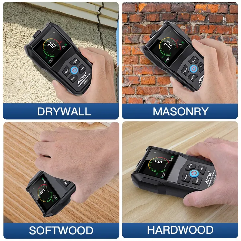 MESTEK drywall moisture meter is a pinless measurement, and we can measure without damaging the wall. At the same time, we can also use a moisture meter to measure the moisture content of concrete and wood. Using a drywall moisture meter, it is very simple to accurately measure the humidity. Just put it close to the drywall and read it.