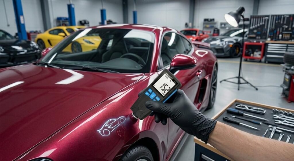 A professional-grade paint thickness gauge ensures accurate readings and helps you confidently assess any used car before purchase.